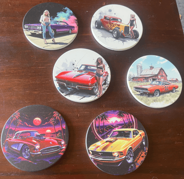 I asked Hombreltd if they would do a custom set of Coasters, they let me pick the pictures I liked from the site, and I got them for my husband for Christmas. They turned out perfect! Really crisp and clear, great present, very happy.