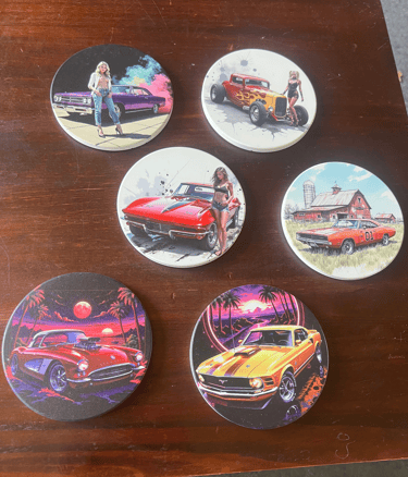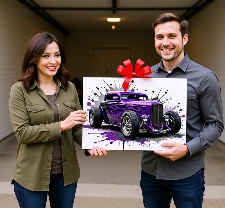 At Hombreltd we want to share our love for all things automotive with you. Each artwork is created by me and brings to life the emotion we get from car shows, swap meets, and race tracks. Printed on high quality framed Canvas or DIBOND Aluminum, they are perfect for transforming your mancave or garage - or if you're allowed, even the house! I grew up with Hot Rods and Pinups on my walls, but I understand that is not for everyone, so all of our artwork can be produced with or without the pinup girls. We also print on apparel and mancave items like mugs and coasters. If you don't see what you want, just ask and we'll see what we can do!